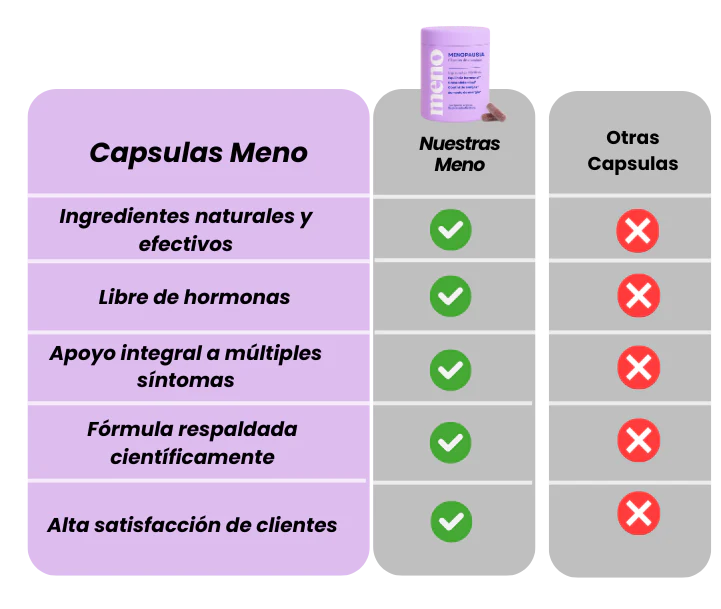 Nuestro suplemento natural está especialmente formulado para ayudarte a reducir los sofocos, mejorar el sueño, equilibrar tu estado de ánimo y sentirte tú misma otra vez. Con ingredientes como el extracto de raíz de maca, soya, vitamina E y cohosh negro, actúa de forma integral para regular naturalmente tu balance hormonal.
